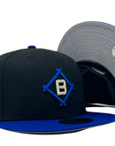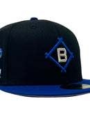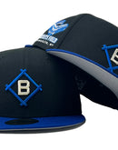 Introducing a unique custom Brooklyn Dodgers Ebbets Field gray brim New Era fitted hat from Sports World. Inspired by historic Ebbets field in Brooklyn where Jackie Robinson used to play. we designed this Dodgers fitted. The 59Fifty high crown fitted hat is designed with a sleek all black color cap with light royal blue visor that provides a bold contrast to the classic design.