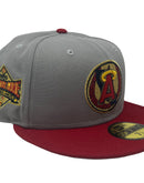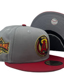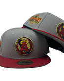 Introducing a unique custom California Angels 1989 all-star game gray brim new era fitted hat from Sports World. The 59Fifty high crown fitted hat is designed with a sleek all light gray color cap with red visor that provides a bold contrast to the classic design.