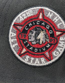 The front logo, rendered in metallic silver, black, gray, and red, exudes sophistication, while the stadium side patch adds a touch of nostalgic charm. Crafted with precision, this hat showcases the iconic NHL logo on the back, rounding off a design that pays tribute to sports heritage. It's gray under visor and black sweatband enhances style and functionality, making it an ideal pick for collectors and enthusiasts.