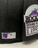 The front logo in black, white, and purple is the perfect representation of the team, giving it a modern and stylish appeal that any Rockies fan would love. 1995 Coor Field side patch on the left mid-panel adds a unique touch to the design, commemorating a special moment in the team's history.
