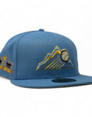 Introducing a unique custom Colorado Rockies gray brim new era fitted hat from Sports World. inspired by the Denver Nuggets old-school colorway, we designed this 59Fifty high crown fitted hat with a sleek all-sky blue color crown that provides a bold contrast to the classic design.