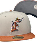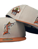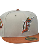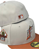 Introducing a remarkable addition to your hat collection - the Florida Marlins 25th Anniversary stone color crown with rust orange visor, gray Brim New Era Fitted Hat from Sports World 165. Crafted with unwavering attention to detail and unparalleled quality, this exclusive custom cap is available only at Sports World 165, the ultimate destination for authentic and top-tier MLB, NBA, and sports apparel. Elevate your style and show off your team pride with this striking 59Fifty high crown cap that epitomizes the essence of the Florida Marlins' 25th anniversary celebration.