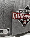 Introducing a unique custom Houston Astros 2022 World series champions gray brim New Era fitted hat from Sports World. The 59Fifty high crown fitted hat is designed with a sleek all light gray color cap with a dark gray visor that provides a bold contrast to the classic design.