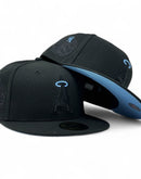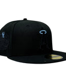 Introducing a unique custom Los Angeles Angels sky blue brim New Era fitted hat from Sports World. The 59Fifty high crown fitted hat is designed with a sleek all black color cap.