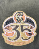 Introducing a unique custom throwback Angels 35th anniversary New Era fitted hat from Sports World. The 59Fifty high crown fitted. It features a sleek all-brown/ walnut color cap.