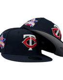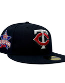 Introducing the Minnesota Twins 1985 All-star Game Gray Brim New Era Fitted Hat, a custom creation brought to you by Sports World 165. This exquisite 59fifty high crown color cap is a true testament to our commitment to providing authentic and exclusive MLB merchandise. Crafted with meticulous attention to detail, this hat embodies the spirit of the Minnesota Twins and their rich All-star game history.