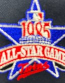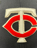 Featuring an alluring all navy-blue color cap, this hat exudes sophistication and style. The front proudly displays the iconic Twins TC logo in red and white with metallic silver outline, making a bold statement wherever you go. To commemorate the team's remarkable 1985 Al star game, a side patch is elegantly positioned on the left mid panel, adding a touch of uniqueness to this remarkable piece.