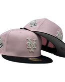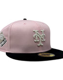 This 59Fifty high crownĀ capĀ features a unique and stylish design, with a light pink color and a black visor. The front logo in chrome/ off white. The new Citi Field side patch on the left mid-panel in various metallic color adds a special touch to the hat, while the New Era flag on the right mid-panel completes the design.Ā front and side patches glow in the dark.