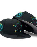 The rear MLB logo in metallic black, teal and yellow. The gray under visor adds a subtle touch of color that blends seamlessly with the rest of the design, making it the perfect accessory to wear to any game.