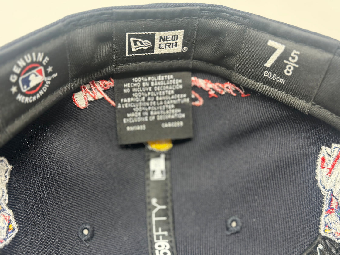 The front logo is in white, with the 1996 World Series on the right side and the 27-time championship ring on the left side of the front crown. Three different championship patches are on the rear back panel, commemorating a special moment in the team's history.