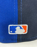 Inspired by the subway Series, we Introduce a unique custom New Era fitted hat from Sports World 165. The 59Fifty high crown fitted hat is designed with a half in navy blue and half in royal blue color crown with navy blue visor.