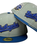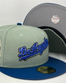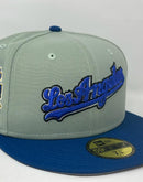 Introducing a unique custom Los Angeles Dodgers Jackie Robinson 50th anniversary gray brim New Era fitted hat from Sports World. The 59Fifty high crown fitted hat is designed with a sleek all Northeastern green color cap with seashore blue visor that provides a bold contrast to the classic design.