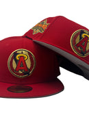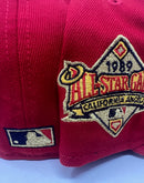 Introducing a unique custom California Angels 1989 all-star game gray brim new era fitted hat from Sports World. The 59Fifty high crown fitted hat is designed with a sleek all-red color cap that provides a bold contrast to the classic design.