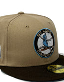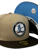 Presenting an exclusive St. louis Cardinals New Era fitted hat only from Sports World. 59Fifty high crown cap. It features all camel/ tan color cap with brown visor. Front Cardinals logo in brown, white, sky blue, toast and metallic copper. 1966 all-star game side patch on left mid panel. Tonal new era flag on right mid panel. Flat MLB batter man in the back. sky blue under visor. white sweat band. 100 percent polyester. imported from China.