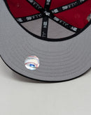 At the back of the cap, you'll find a flat MLB batter man in stunning black, white, and red set against a gray under visor. The black sweatband provides both comfort and practicality, ensuring that this cap is as functional as it is stylish.