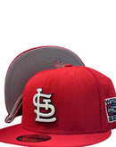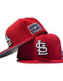 Introducing a unique custom St. Louis Cardinals 2006 World series gray brim new era fitted hat from Sports World. The 59Fifty high crown fitted hat is designed with a sleek all-red color cap that provides a bold contrast to the classic design.