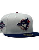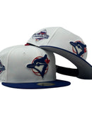 Introducing a unique custom Toronto Blue Jays 1993 World Series New Era fitted hat from Sports World. The 59Fifty high crown fitted hat is designed with a sleek all white color cap with a royal blue visor that provides a bold contrast to the classic design.