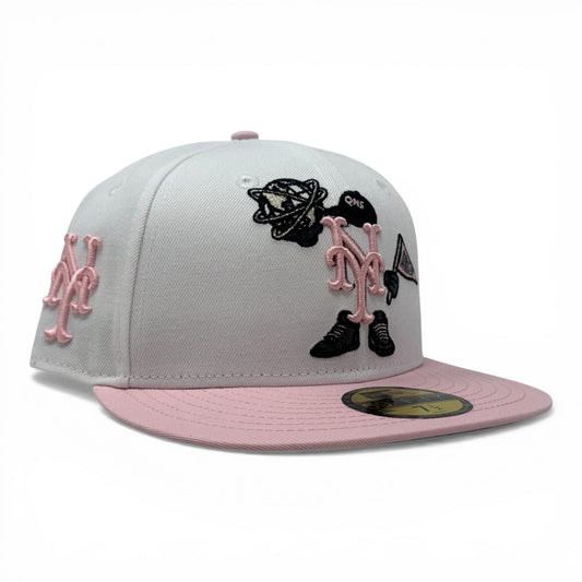 New York Mets Cartoon 59FIFTY QNS New Era Fitted Hat -White/Pink