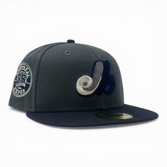 Montreal Expos 35th Anniversary Fitted Hats to Match OG Flint 13-Dark Gray Navy