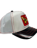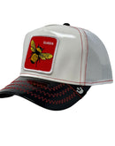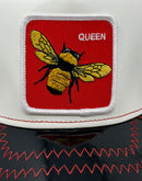 The Goorin Bros. The Red Queen Patent Leather The Farm bee black and white trucker cap is a cap that stands out for its quality. The Goorin Bros. brand is known for its high quality caps and this one is no exception. The embroidered bee patch is a testament to the attention to detail that goes into each of the caps they make.