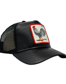 The Goorin Bros The Cock Will Prevail Patent Leather Trucker Hat showcases a fusion of classic trucker style with a contemporary twist. Its standout feature is the patent leather front panel embossed with a distinctive rooster motif, reflecting both sophistication and playful charm. The mesh back provides comfort and breathability, perfect for all-day wear during outdoor adventures or casual outings.