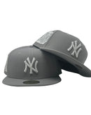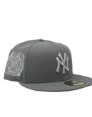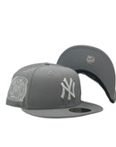 Introducing a unique custom New York Yankees Subway series New Era fitted hat from Sports World 165. The 59Fifty high crown fitted hat is designed with a sleek all Light gray color cap.