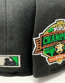 Introducing a unique custom Houston Astros 2022 world series Champions gray brim New Era fitted hat from Sports World. The 59Fifty high crown fitted hat is designed with a sleek all black color cap with a Kelly-green visor that provides a bold contrast to the classic design.