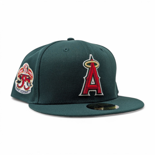 Los Angeles Angels 35th Anniversary Dark Green Pink Brim Fitted Hats