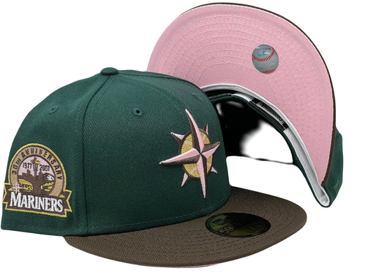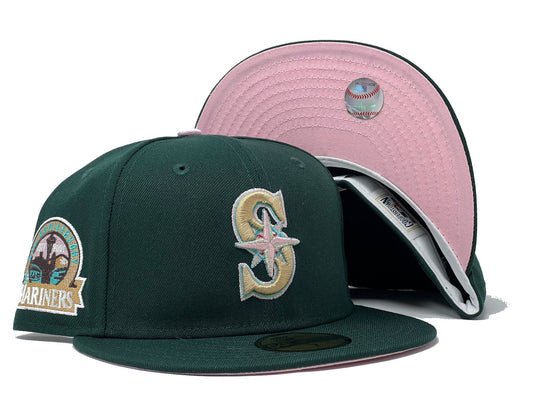 Seattle Mariners 35th Anniversary Dark Green Pink Brim Fitted Hats