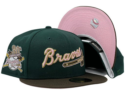 Atlanta Braves 30th Anniversary Dark Green Brown Visor Pink Brim New Era Fitted Hat