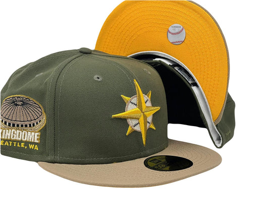 Seattle Mariners Kingdome Stadium Olive Crown Camel Visor Fitted Hats