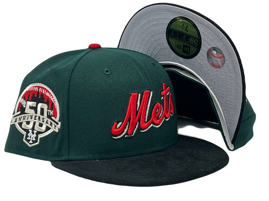 New York Mets 50TH Anniversary Dark Green Black Corduroy Visor Gray Brim New Era Fitted Hat