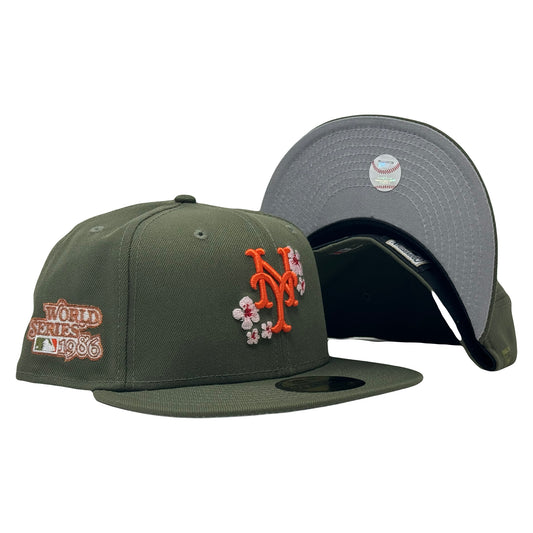 New York Mets 1986 World Series "Cherry Blossom Pack" Olive Green 59Fifty New Era Fitted Hat