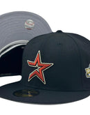 Introducing a remarkable addition to your sports memorabilia collection - the Houston Astros 2005 World Series Black Gray Brim New Era Fitted Hat. This custom-designed cap boasts an elegant black exterior, showcasing the iconic team's old school logo on the front, representing a nostalgic nod to the team's glorious past. Commemorating their victorious 2005 World Series campaign, the hat features a classic side patch on the left mid-panel, transporting you back to that unforgettable championship moment. Crafted with precision, this premium-quality hat bears the trusted New Era brand, with a tonal flag proudly displayed on the tight mid-panel.