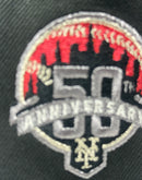 The front logo in dark metallic gray with metallic red outline is the perfect representation of the team, giving it a modern and stylish appeal that any Mets fan would love. 50th anniversary side patch on the left mid-panel adds a unique touch to the design, commemorating a special moment in the team's history.