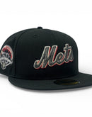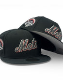 Introducing a unique custom New York Mets gray brim New Era fitted hat from Sports World. The 59Fifty high crown fitted hat is designed with a sleek all black color cap that provides a bold contrast to the classic design.