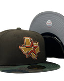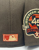 Introducing a unique custom Houston Astros 45th anniversary gray brim new era fitted hat from Sports World. The 59Fifty high crown fitted hat is designed with a sleek all brown color crown and a camouflage visor that provides a bold contrast to the classic design.
