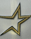 The front logo in metallic gold with olive green and white outline.  1986 All-star game side patch on the left mid-panel adds a unique touch to the design, commemorating a special moment in the team's history.