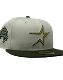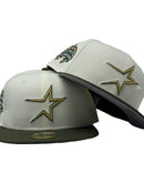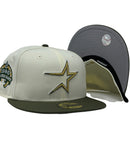 Introducing a unique custom Houston Astros 1986 All-star Game gray brim New Era fitted hat from Sports World. The 59Fifty high crown fitted hat is designed with a sleek all off white color cap with olive green visor that provides a bold contrast to the classic design.