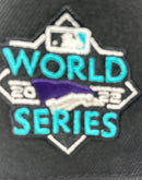 The front logo in teal with metallic silver outline.  2022 world series side patch on the left mid-panel adds a unique touch to the design, commemorating a special moment in the team's history.