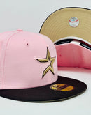 Rep your team with custom New Era fitted hat exclusively from sports world inspired by 31 flavor throwback Baskin Robins logo . 59Fifty high crown cap. It features all light pink crown with walnut visor. front logo in tan with brown and pink outline. 45th anniversary side patch in toast, brown, pink and white. flat MLB batter man in the back. camel under visor. white sweat band. crown 100 percent polyester and visor 100 percent polyester. imported from Bangladesh.