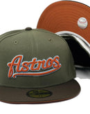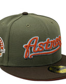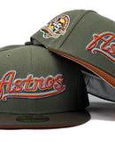 Presenting an exclusive custom New Era fitted " Fall Harvest pack" only from Sports World. 59Fifty high crown cap. It features all Olive-green color crown with brown visor. Front logo in rust orange with sky blue outline. 45th anniversary side patch on left mid panel. tonal new era flag on right mid panel. MLB batter man in the back. Rust orange under visor. white sweat band. 100 percent polyester. imported from China.