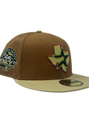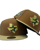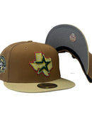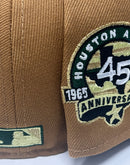 Introducing a unique custom Houston Astros 45th anniversary gray brim new era fitted hat from Sports World. The 59Fifty high crown fitted hat is designed with a sleek all-camel color crown and a stylish Vegas gold visor that provides a bold contrast to the classic design.