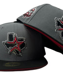 Introducing a unique custom Houston Astros 45th anniversary red brim new era fitted hat from Sports World. The 59Fifty high crown fitted hat is designed with a sleek all-storm gray color crown and a stylish black visor that provides a bold contrast to the classic design.
