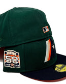 Presenting an exclusive "Green Dome" collection New Era fitted hat from sports world. 59Fifty high crown cap. It features an all-dark green color cap with navy blue visor. Front Astros...