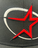 The front Astros logo in red with black outline is the perfect representation of the team, giving it a modern and stylish appeal that any Astros fan would love. Circle logo in white. The Apollo 11 side patch on the left mid-panel adds a unique touch to the design, commemorating a special moment in the team's history.