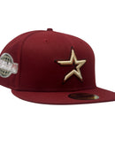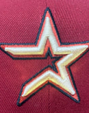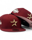 Introducing the Houston Astros Brick Red 2005 World Series New Era Fitted Hat - a masterpiece crafted for true sports enthusiasts who cherish timeless classics and authentic memorabilia. This custom-designed on-field pink brim New Era fitted hat proudly displays the team's old school logo in the front, evoking a sense of nostalgia and admiration for the glorious 2005 World Series. As you glance at the left mid panel, you'll find the iconic 2005 World Series side patch, a symbol of triumph and the team's indomitable spirit during that historic season.