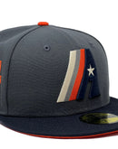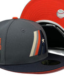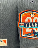 Presenting an exclusive custom New Era fitted hat from Sports world. 59Fifty high crown cap. it features an all-red color cap with brown visor. front prototype Astros logo in brown, royal, yellow and gold. 20th anniversary side patch on left mid panel. tonal new era flag on right mid panel. flat MLB batter man in the back. yellow under visor. white sweat band.100 percent polyester. imported from China.