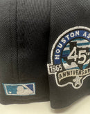 Introducing a unique custom Houston Astros 45th anniversary gray brim new era fitted hat from Sports World. The 59Fifty high crown fitted hat is designed with a sleek all navy-blue color crown and a stylish seashore visor that provides a bold contrast to the classic design.