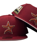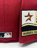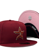 Introducing a unique custom Houston Astros inaugural season pink brim new era fitted hat from Sports World. The 59Fifty high crown fitted hat is designed with a sleek all brick-red color cap that provides a bold contrast to the classic design.
